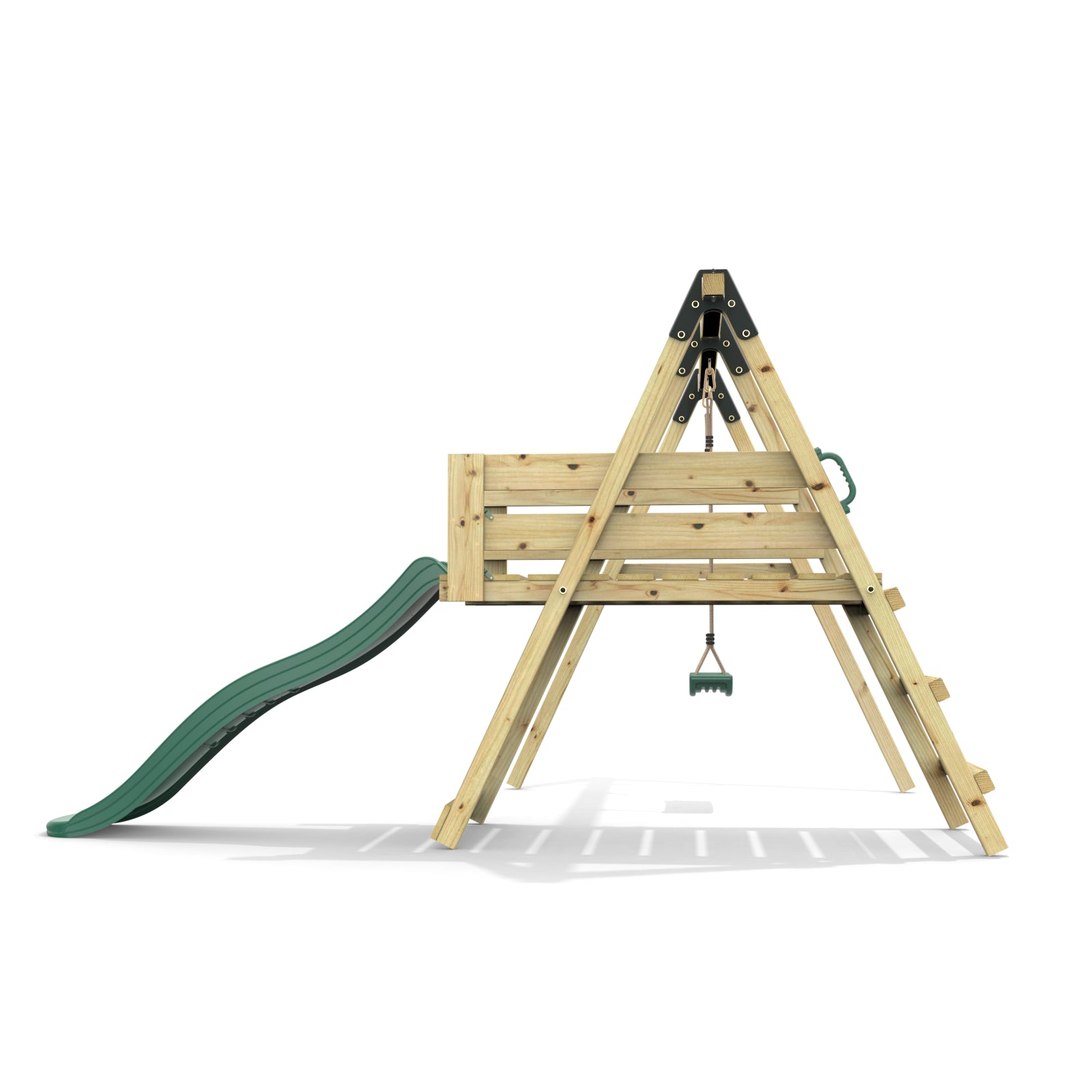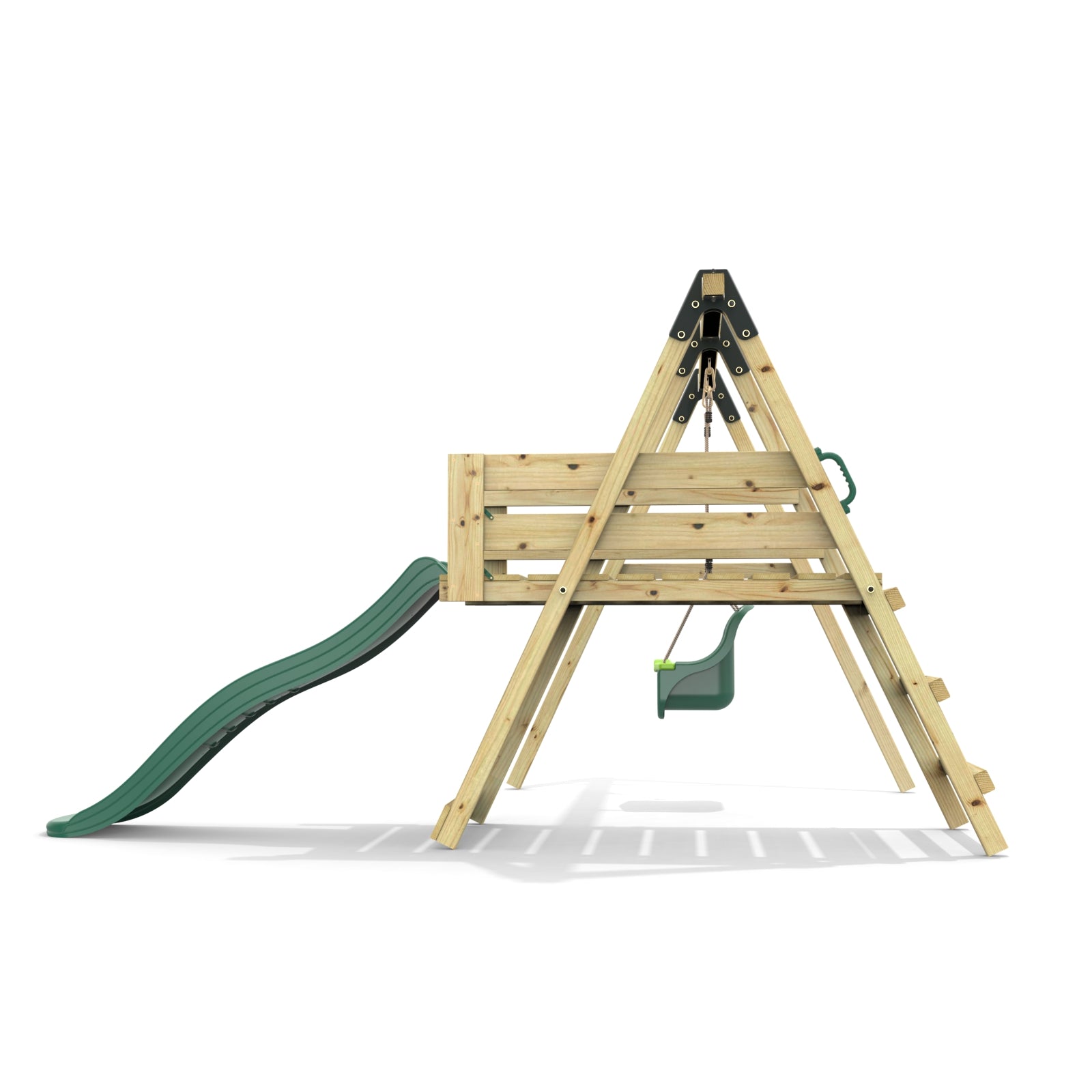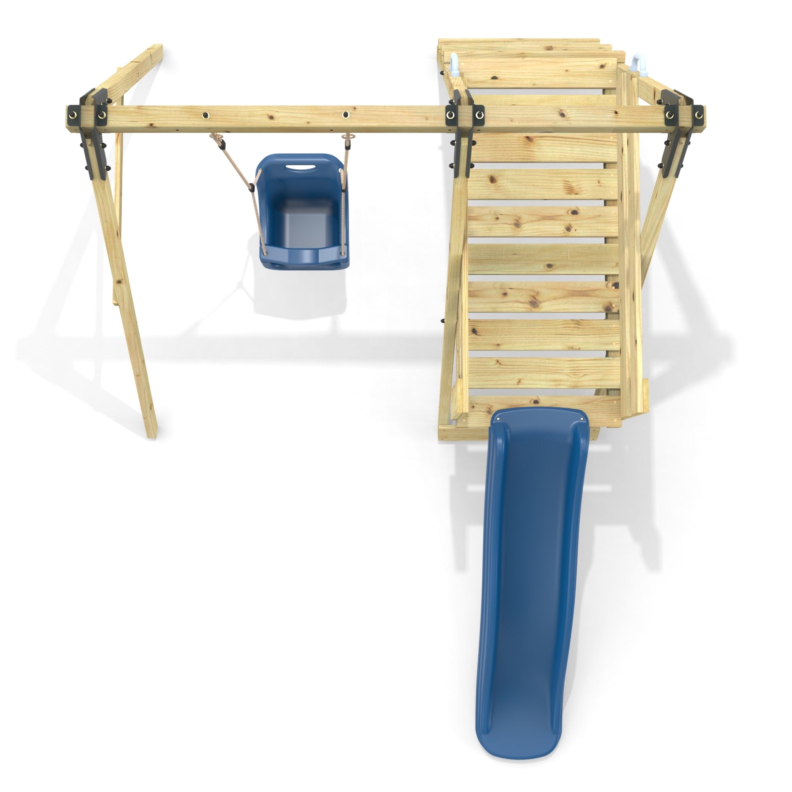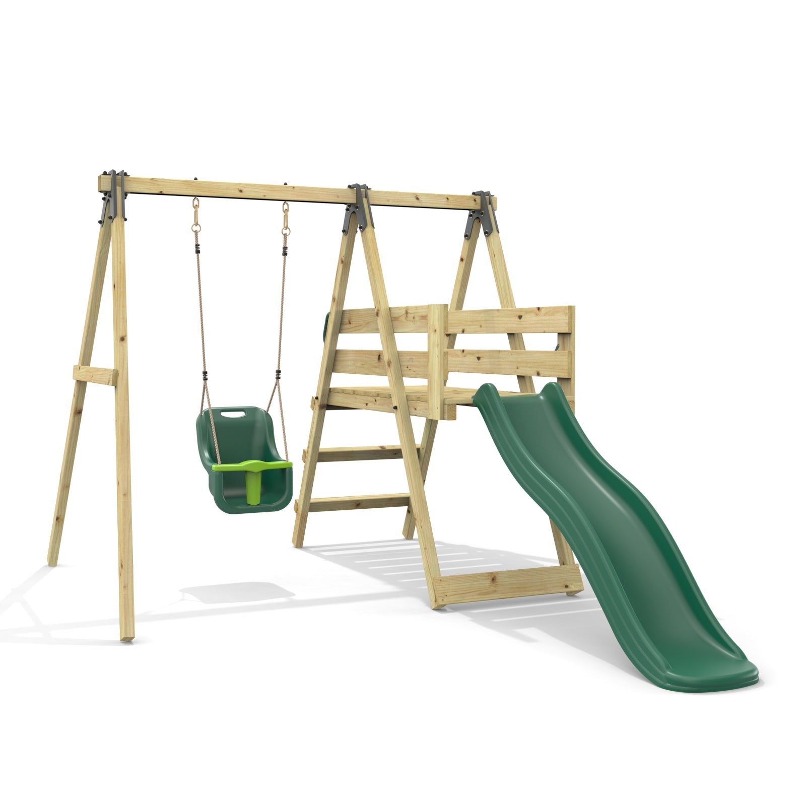 The new Orchid single swing with slide is a durable garden swing set made from strong pressure treated square profile timber, the compact footprint is styled to complement any outside space thanks to its elegant modern design.