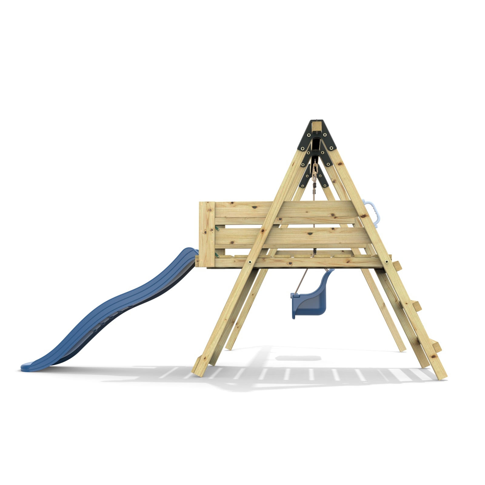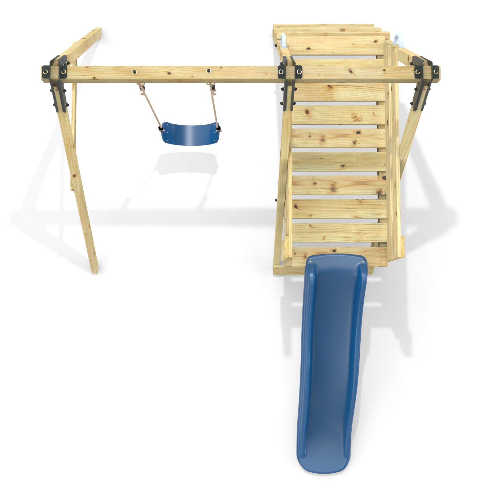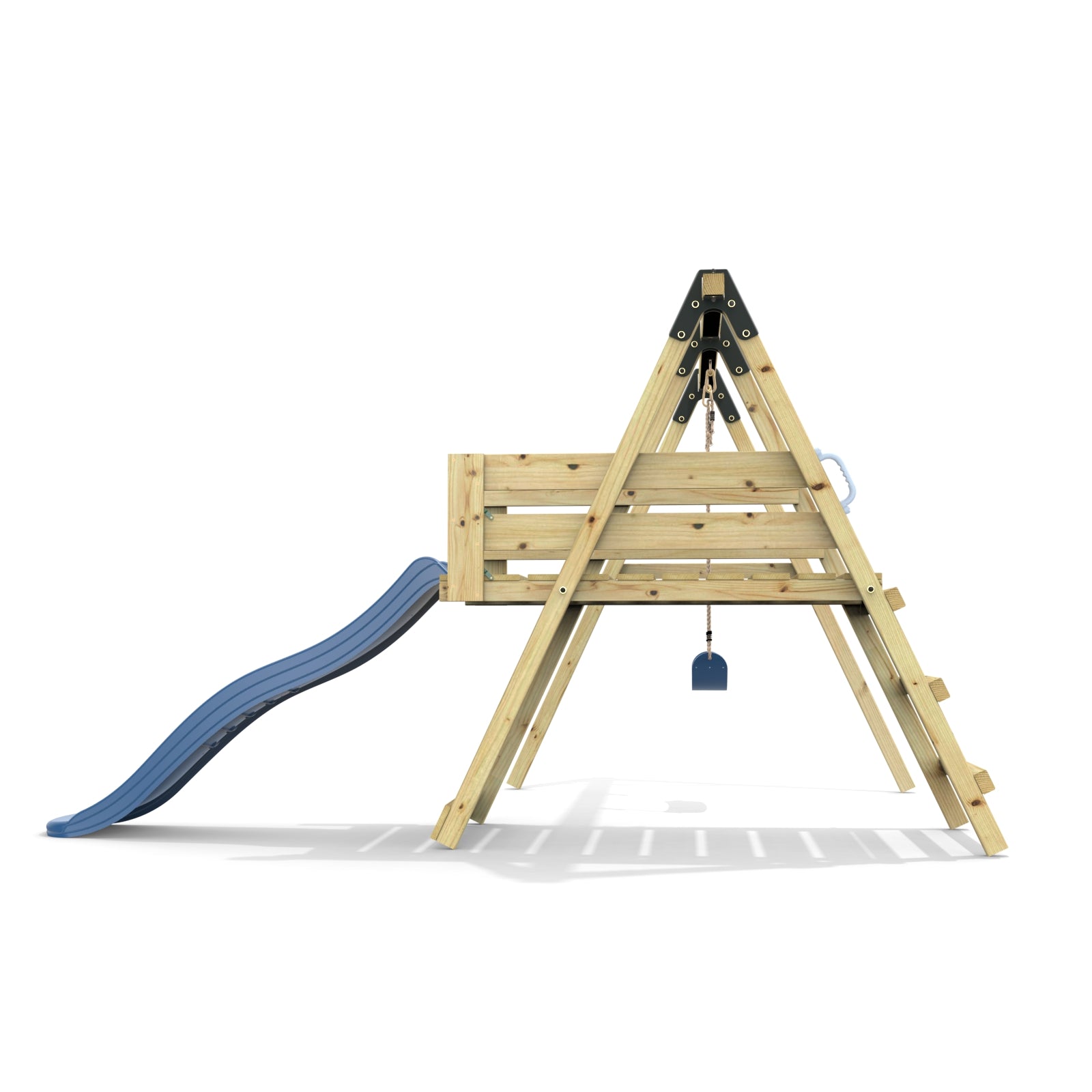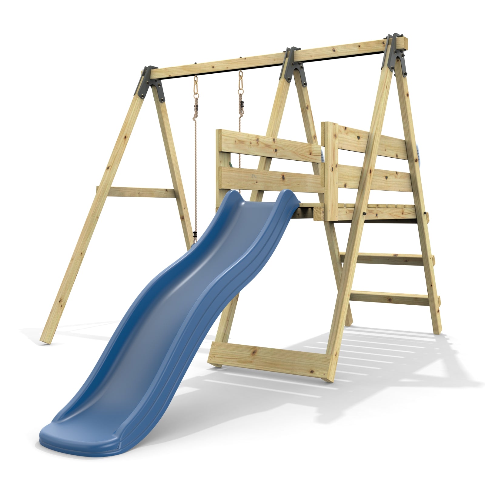 The new Orchid single swing with slide is a durable garden swing set made from strong pressure treated square profile timber, the compact footprint is styled to complement any outside space thanks to its elegant modern design.